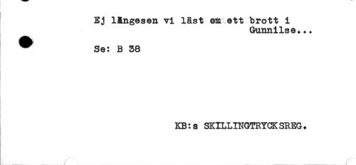 //// Ej Ungesen vi läst em ett brott i //// Gunnilae... //// ^ Se: B 38 //// * //// KB:s SKILLINGTRYCKSREG. ////