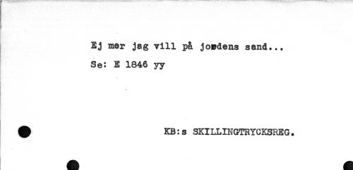 //// Ej mer jag vill på joedens sand... //// Se: E 1846 yy //// ! //// ! < //// ^ KB:s SKILLINGTRYGKSREG. ////