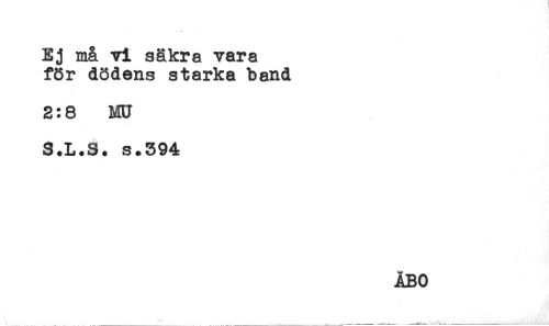 //// Ej må vi säkra vara //// för dödens starka band //// 2:8 MU //// S.L.S. s.394 //// ÅBO ////