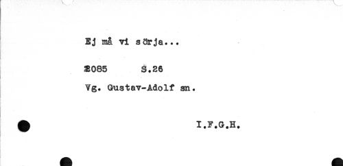 //// Ej må vi sörja... //// ... //// 33085 3.26 //// Yg. Gustav-Adolf sn. //// ^ I.F.G.H. ////
