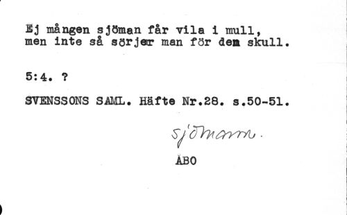 //// Ej mången sjöman får vila i mull, //// men inte så sörjer man för den skull. //// t //// 5:4. ? //// SVENSSONS SAML. Häfte Nr.28. s.50-51. //// . t //// ÅBO //// < //// ( //// t 1 ////