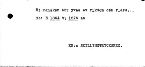//// -Rj mänskan bör yvas av rikdom osh flärd... //// ^ Se: E 1864= t; 1876 aa //// i //// i //// KB:s SKILLINGTRYCKSREG. //// i //// ! //// < ////
