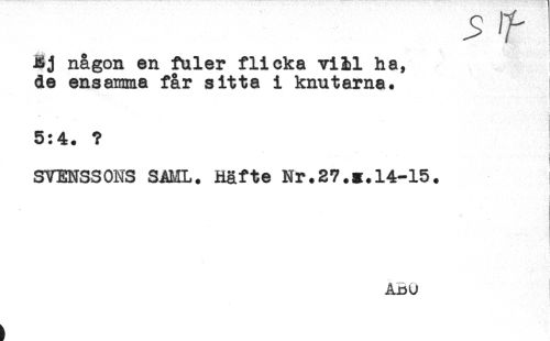 //// ' t //// Rj någon en fuler flicka viM ha, ! //// de ensaiama får sitta i knutarna. //// i //// 5:4. ? //// - //// SVENSSONS SAML. Häfte Nr.27.z.14-15. //// i //// ÅBO ////