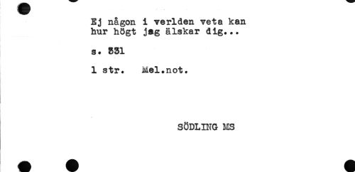 //// Ej någon i ve riden veta kan //// hur högt jag älskar dig... //// s. 831 //// 1 str. Mel.not. //// * //// SÖDLING MS ////