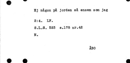 //// .- * //// Ej någon på jorden så ensam som jag //// & //// 2:4. LF. //// S.L.S. 523 s.178 nr.42 //// N. //// ÅBO ////