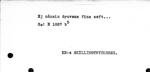 //// -T ' ^ * //// Ej nånsin druvans fina saft... //// ' //// Se: E 1827 b^ //// ) //// i . //// ^ KB:s SKILLINGTRYCKSREG. ////