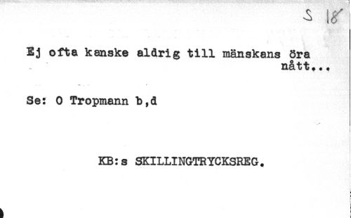 //// Ej ofta kanske aldrig till mänskans öra //// nått... //// Se: 0 Tropmann b,d //// i //// KB:s SKILLINGTR YCKSREG. //// t //// t //// h //// i //// < //// ! //// 4 //// - ////