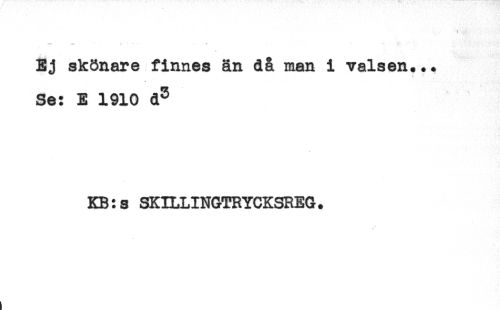 //// ) //// -v; ?. * - * //// Ej skönare finnes än då man i valsen... //// ( - //// Se: E 1910 d^ //// KB:3 SKILLINGTRYCKSREG. ////