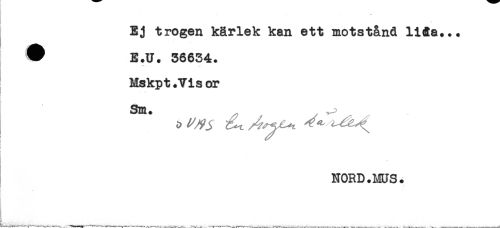 //// Ej trogen kärlek kan ett motstånd lHa... //// ^ E.U. 36634. //// * - //// Mskpt.Visor //// Sm. //// t //// NORD.MUS. //// --- - ,--- -----...----- --- ----- ^ -..,- ... ----.. - ---- -- ////