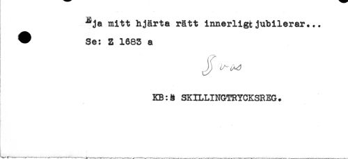 //// -Eja mitt hjärta rätt innerligt jubilerar... //// ^ Se: 2 1683 a //// i //// KB:å SKILLINGTRYCKSREG. //// ! * //// L //// B //// t //// t . ////