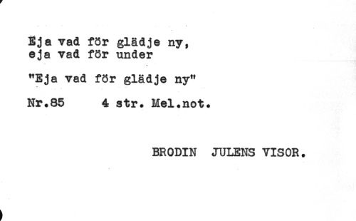 //// - - * - < //// Eja vad för glädje ny, //// eja vad för under //// "Eja vad för glädje ny" //// Nr.85 4 str. Mel.not. //// BRODIN JULENS VISOR. ////