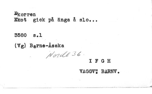 //// -^k or ren //// Ekot gick på änga å slo... //// 3580 s.l //// (Vg) Bame-Åsaka ////