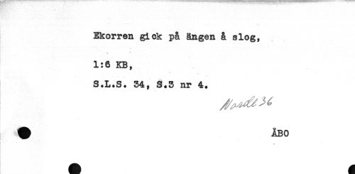 //// f //// Ekorren gick på ängen å slog, //// * * //// 1:6 KB, //// S.L.S. 34, S.3 nr 4. ////