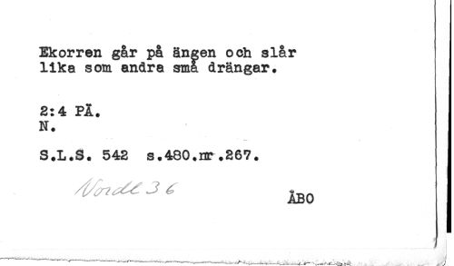//// Ekorren går på ängen och slår //// lika som andra små drängar. //// 2:4 PA. //// N. //// S+L.S. 542 s.480.nr .267. ! //// ^ "' ^ ÄBO //// i //// .---. . ... . . . ___ .. . t. * ////