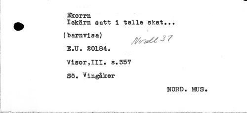 //// Ekorrn //// ^^ Iekärn satt i talle skat... //// t baravisa) //// E.U. 20184. //// j - ' , //// Visor,III. s.357 //// Sö. Vingåker //// NORD. MUS. ////