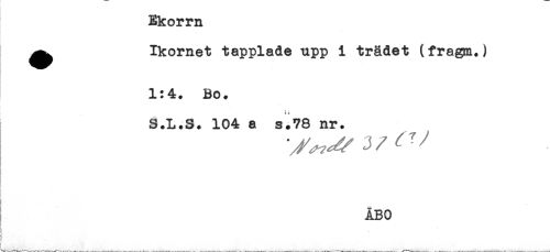 //// Ekorrn //// ^^ Ikornet tapplade upp i trädet (fragm.) //// 1:4. Bo. //// S.L.S. 104 a s.78 nr. //// ' ^^ J ^ ^ ' ^ //// < //// t //// ÅBO //// !) //// i} //// i ////