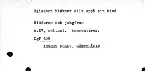 //// - * - - - -. - .. //// Elisabon bleknar allt uppå sin kind //// ^ * . ' ' . t //// * i //// Riddaren och juhgfmn //// //// /s.27, mel.not. kommentarer. //// . //// DgF 458 //// INGERS FOLKV. GÅBDSHARAD ////