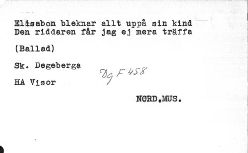 //// - - - - -. - - * , //// Elåsabon bleknar allt uppå sin kind //// Den riddaren får jag ej mera träffa //// * i //// } //// (Ballad) //// r //// Sk. Degeberga ^ ,^ //// HA Visor //// /NORD,MUS. //// i //// ! //// t ////