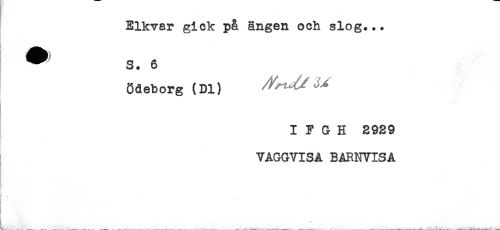 //// Elkvar gick på ängen och slog... //// ^ S. 6 //// Ödeborg (Dl) ^ //// I F G H 2929 //// i //// VAGGVISA BARNVISA //// ? //// !' ^ //// :f //// : //// ' . //// t' //// i //// j ////