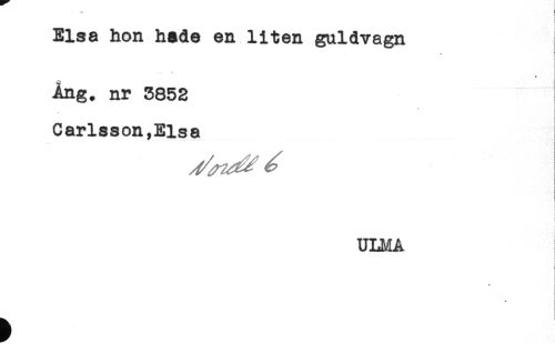 //// Elsa hon hade en liten guldvagn //// .. * //// # //// Ång. nr 3852 //// Carlsson,Elsa //// < //// ULMA //// i ////