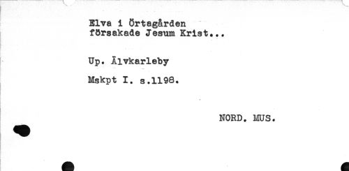 //// .. - , .. . ....... //// Elva i örtagården //// försakade Jesum Krist... //// Up. Älvkarleby //// * -m' //// . //// Mskpt 1. s.1198. //// NORD. MUS. ////