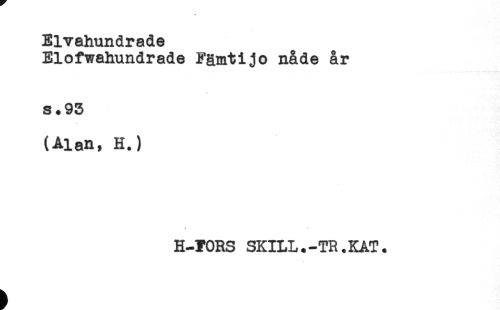 //// Elvahundrade //// Elofwahundrade Fämtijo nåde år //// s.95 //// (Alan, H.) //// ! ' //// H-TORS SKILL.-TR.KAT. ////
