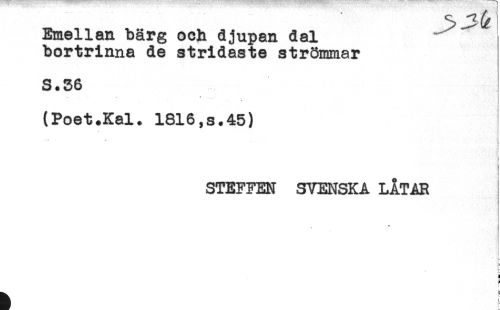 //// Emellan bärg och djupan dal //// bortrinna de stridaste strömmar //// S.56 //// . .. + ..* //// (Poet.Kal. 1616,3.45) //// ! //// { //// f //// t //// ) //// i //// i //// < //// ! //// STEFFEN SVENSKA LÅTAR //// ) //// L- //// - //// - //// * ////