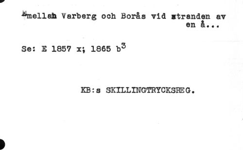 //// -^mellah Varberg och Borås vid stranden av //// en å... //// Se: E 1857 x; 1865 b^ //// KB:s SKILLINGTRYCKSREG. ////