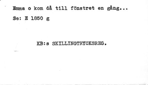 //// Emma o kom då till fönstret en gång... //// Se: E 1850 g //// KB:s SKILLINGTRYCKSREG. ////