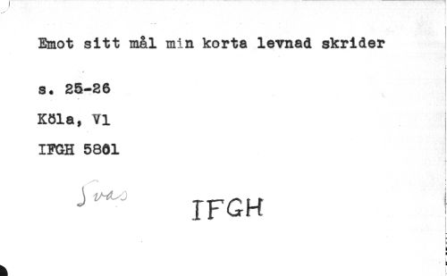 //// Emot sitt mål min korta levnad skrider //// { //// * //// s. 25-36 //// v //// { //// Köla, VI //// IFGH 5801 //// i //// '^ iFGw : //// r //// L //// i ////