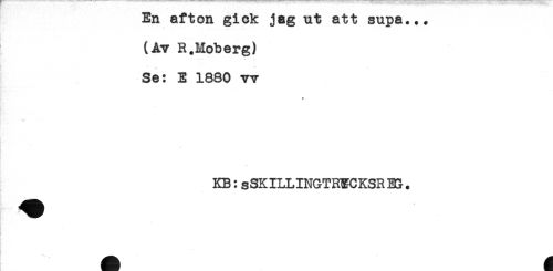 //// En afton gick jag ut att supa... //// (Av R.Moberg) //// - .. //// Se: E 1880 vv //// * ////