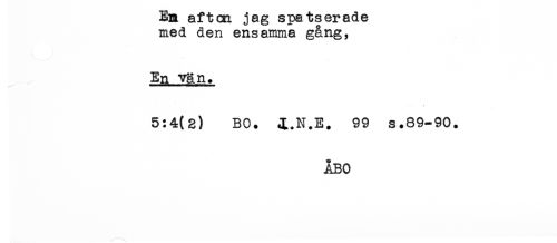 //// Em aftcn jag spatserade //// med den ensamma gång, //// En vän. //// 5:4(2) BO. I.N.E. 99 s.89-90. //// ÅBO ////