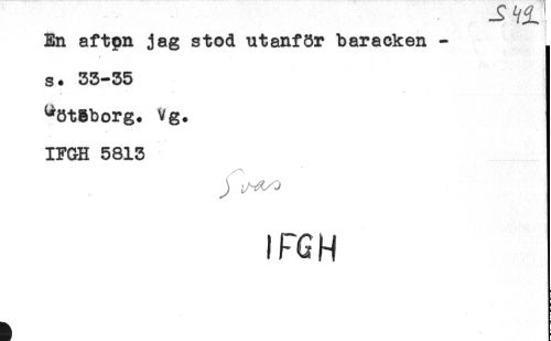 //// ..... - //// En aftpn jag stod utanför baracken - //// s. 33-35 //// * * * ** //// ^ötBborg. Vg. //// IF&H 5813 //// )FCH ////
