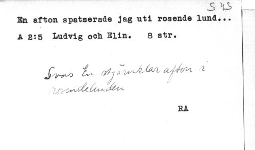 //// En afton spatserade jag uti rosende lund... //// A 2:5 Ludvig och Elin. 8 str. //// RA ////