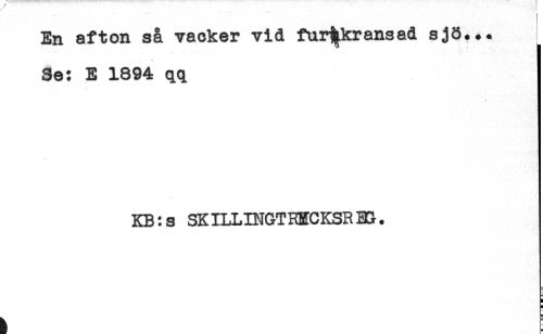 //// En afton så vacker vid fnr^kransad sjö... //// Se: E 1894 qq //// KB:s SKILLINGTHKCKSRBS. //// i //// H ////