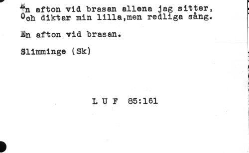 //// ^n afton vid brasan allena jag sitter, //// Öch diktar min lilla,men redliga sång. //// En afton vid brasan. //// Slimminge (Sk) ^ //// t //// . ^ //// - //// { //// r //// ! //// = //// j //// < //// L U ? 85:161 ////