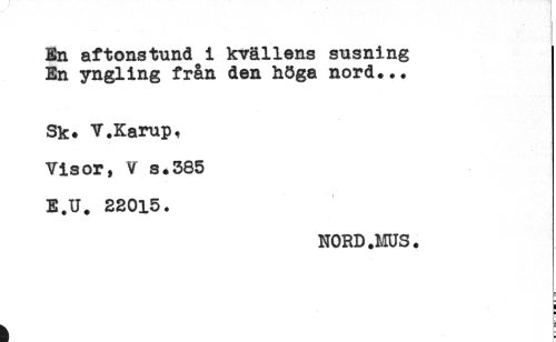 //// * //// En aftonstund i kvällens susning //// En yngling från den höga nord... //// Sk. V.Karup. //// Visor, V s.385 //// E.U. 22015. //// NORD.MUS. //// ! //// E ////