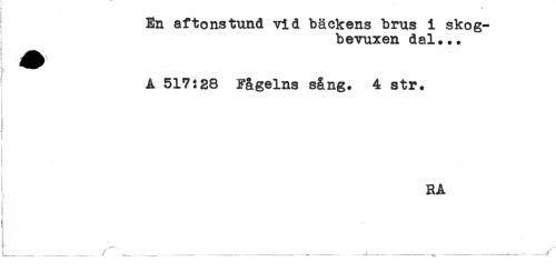 //// En aftonstund vid bäckens brus i skog- //// bevuxen dal... //// ) ^ //// A 517:38 Fågelns sång. 4 str. //// t //// RA ////