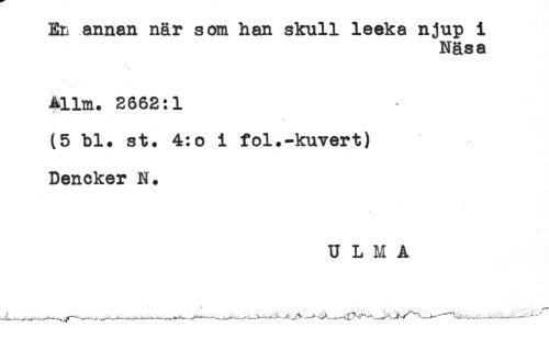 //// EE annan när som han skull leeka njup i //// Näsa //// Allm. 2662:1 //// (5 bl. st. 4:o i fol.-kuvert) //// Dencker N. //// U L M A ////