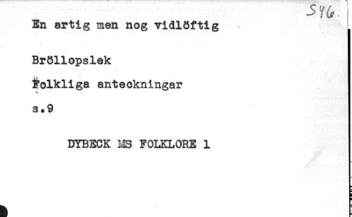 //// En artig men nog vidlöftig //// ^ * . . -^ //// Bröllopslek //// #olkliga anteckningar //// -4' //// s.9 //// DYBECK MS FOLKLORE 1 //// ^ } ////