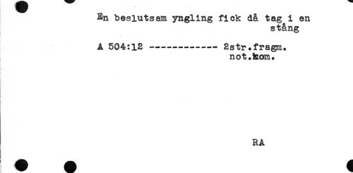//// En beslutsam yngling fick då tag i en //// stång //// A 504:12 --- 2str.fragm. //// not #hom# //// s //// i //// RA ////