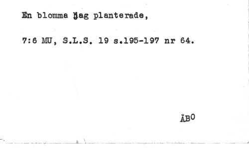 //// : //// En blomma $ag planterade, //// 7:6 MU, S.L.S. 19 s.195-197 nr 64. //// ÅBO //// -- ^ ____ ___ ...... ___..... __ ___ _.... ////