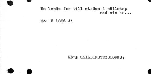 //// En bonde for till staden i sällskap //// med sin ko..+ //// Se: E 1886 dd //// - //// KB:s SKILLINGTRYCKSREG. //// i ' ////