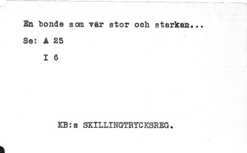 //// En bonde som vär stor och starkas... //// Se: A 25 //// I 6 //// KB:s SKILLINGTRYCKSREG. //// < ////
