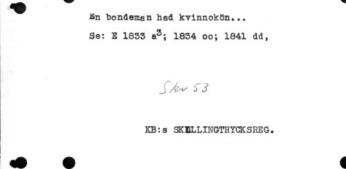 //// En bondeman had kvinnokön... //// Se: E 1833 a^; 1834 oo; 1841 dd, //// j ^ //// KB:s SKELLINGTRYCKSREG. ////