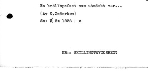 //// En bröllopsfest som utmärkt var... //// ^^ (Av O.Cederbom) //// Se: ^ Zz 1838 - c //// KB:s SKILLINGTRYCKSREG^ ////
