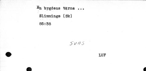 //// ^n bygdens tärna ... //// - - -v.- - - -**. //// Slinminge (Sk) //// t * //// * //// 85:38 //// ^ LUF ////