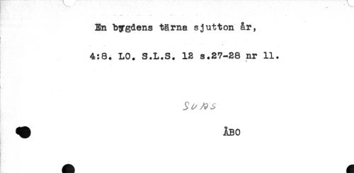 //// - - -. ^ ..... ^ . //// En bygdens tårna sjutton år, //// 4:8. LO. S.L.S. 12 s.27-28 nr 11. //// # //// ; //// i, ^ ////