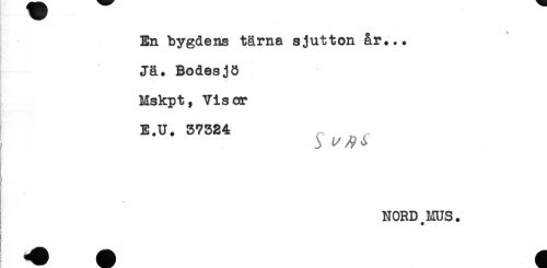 //// -n n //// En bygdens tärna sjutton år... //// Jä. Bodesjö //// Mskpt, Visor //// * * //// E.U. 37324 //// t //// NORD MUS. //// < ////