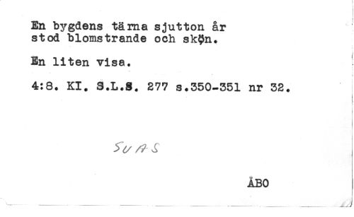 //// En bygdens tärna sjutton år //// stod blomstrande och sk§n+ //// En liten visa. //// t //// ' * '* t //// 4:8. Kl. 3.L.8. 277 s.350-351 nr 32. //// ÅBO //// ---- ----- - - - -- ____ ___ ___ ////